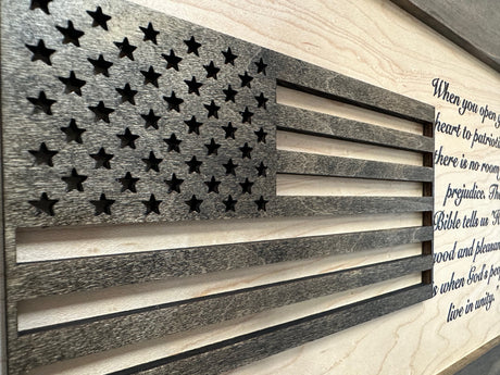 American Flag & Patriotism Decorative & Secure Wall-Mounted Gun Cabinet (Jacobean & Natural)