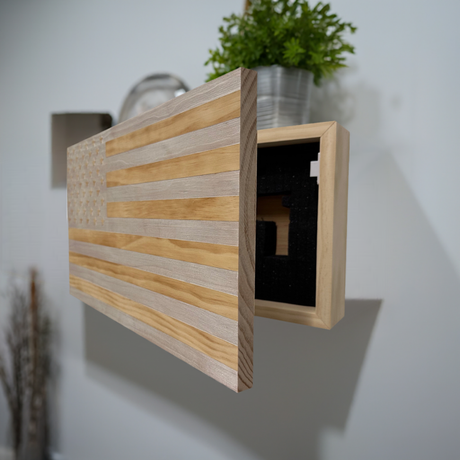 American Flag Hidden Gun Storage Decorative & Secure Wall-Mounted Concealed Gun Cabinet (Natural)