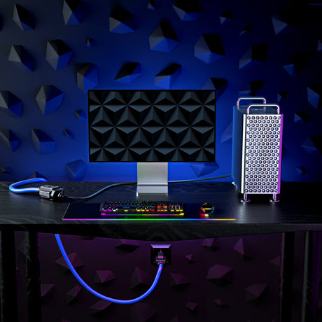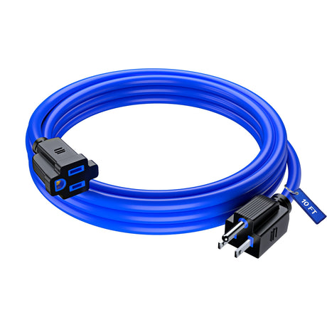 Maximm Extension Cord 10 Ft Blue Indoor 16 Gauge SJTW Heavy Duty ETL Listed For Home Workshop Use