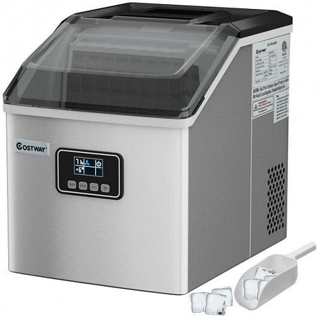 Silver Stainless Ice Maker 48 Lbs Self Clean LCD-Adventure