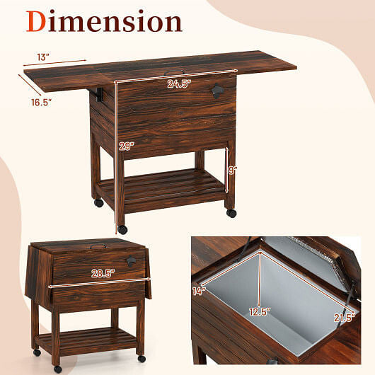54 Quart Wooden Cooler Cart Shelves Brown - Adventure-Ready