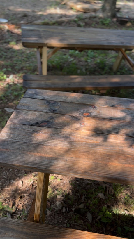 Freedom Bench – Wood Picnic Table (Used) – Camp Smart, Chill Hard.