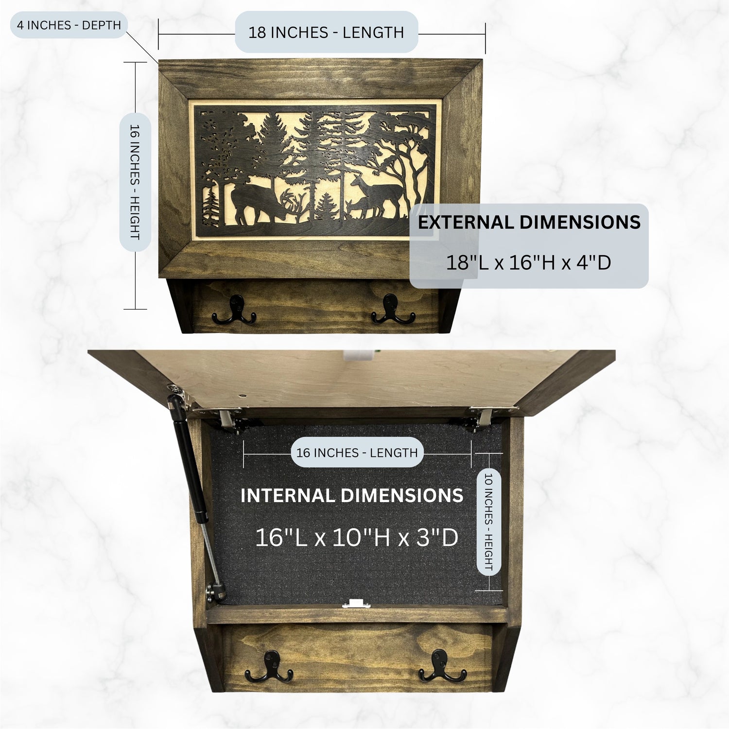 Deer Scene Wall Mounted Gun Cabinet Coat Rack — Hide Your Pistol in Plain Sight