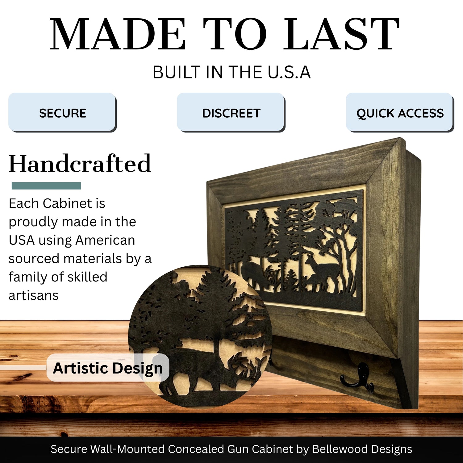 Built to blend with cabin vibes or city pads, the cabinet gives you quick access without announcing itself. Think of it as a guest-friendly safe spot: guests admire the art, you silently admire your own preparedness.
