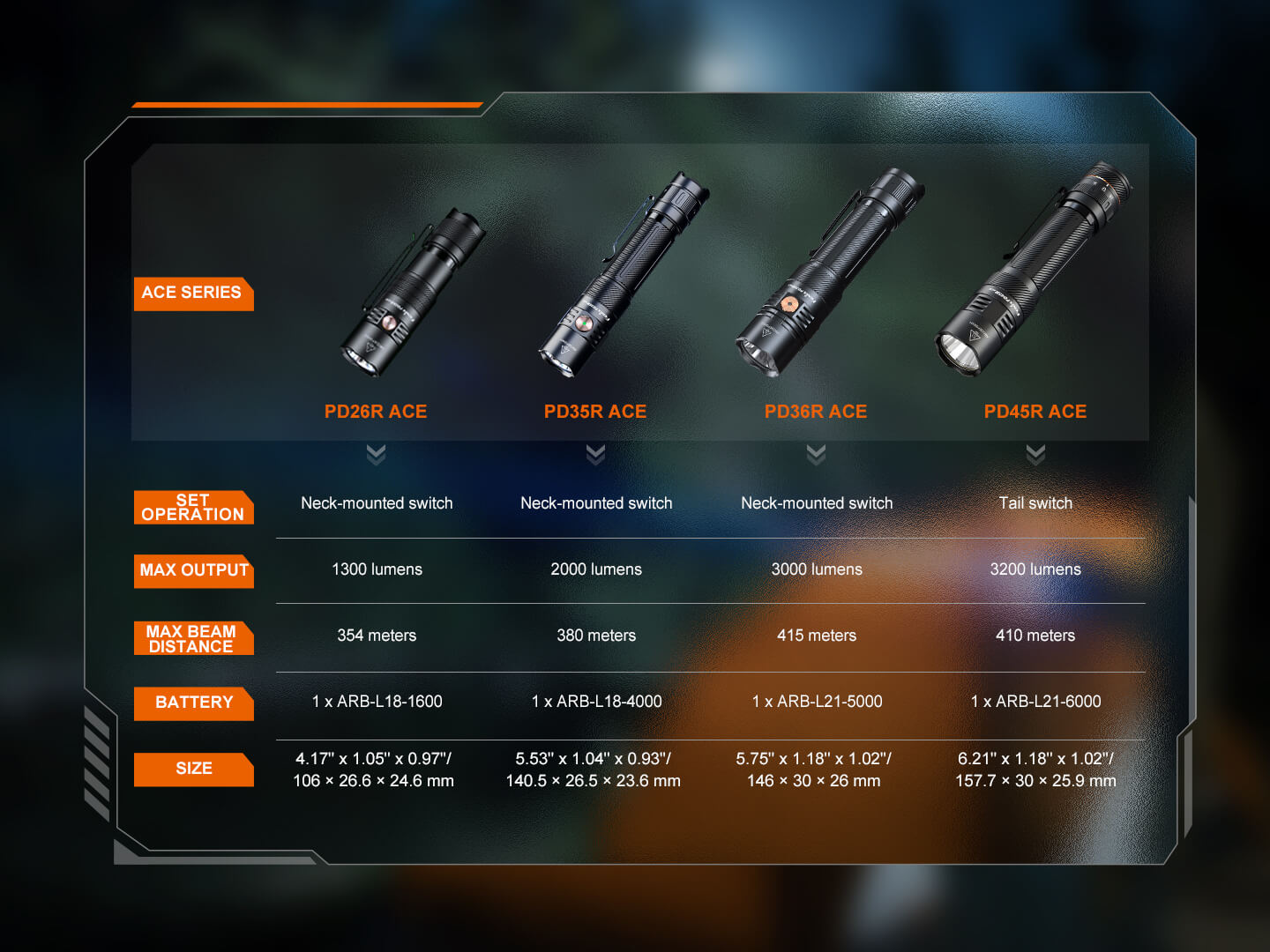 Fenix PD26R ACE Multi Mode Tactical Flashlight For Everyday Carry 1300 Lumens 1162ft Beam