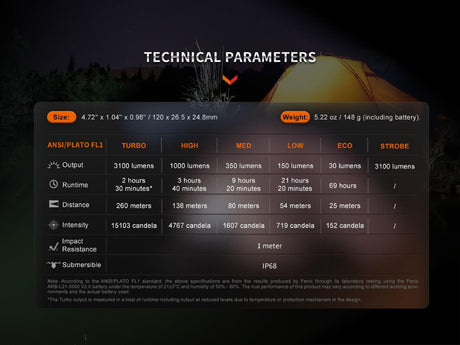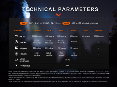 Fenix PD36 TAC 5.5in Flashlight 3000 Lumens – Trail Tested