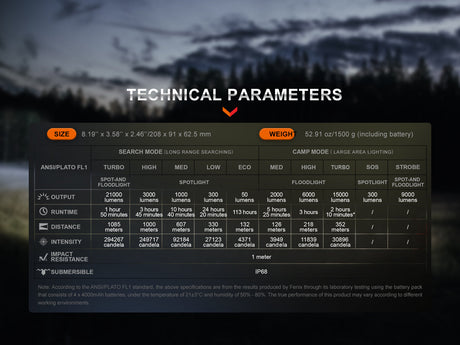 Fenix LR60R Rechargeable Searchlight 21000 Lumens OLED Display Long Range Beam Outdoor Pros