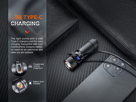 Fenix E18R V2 Rechargeable LED Flashlight For EDC Enthusiasts 1200 Lumen Compact USB C