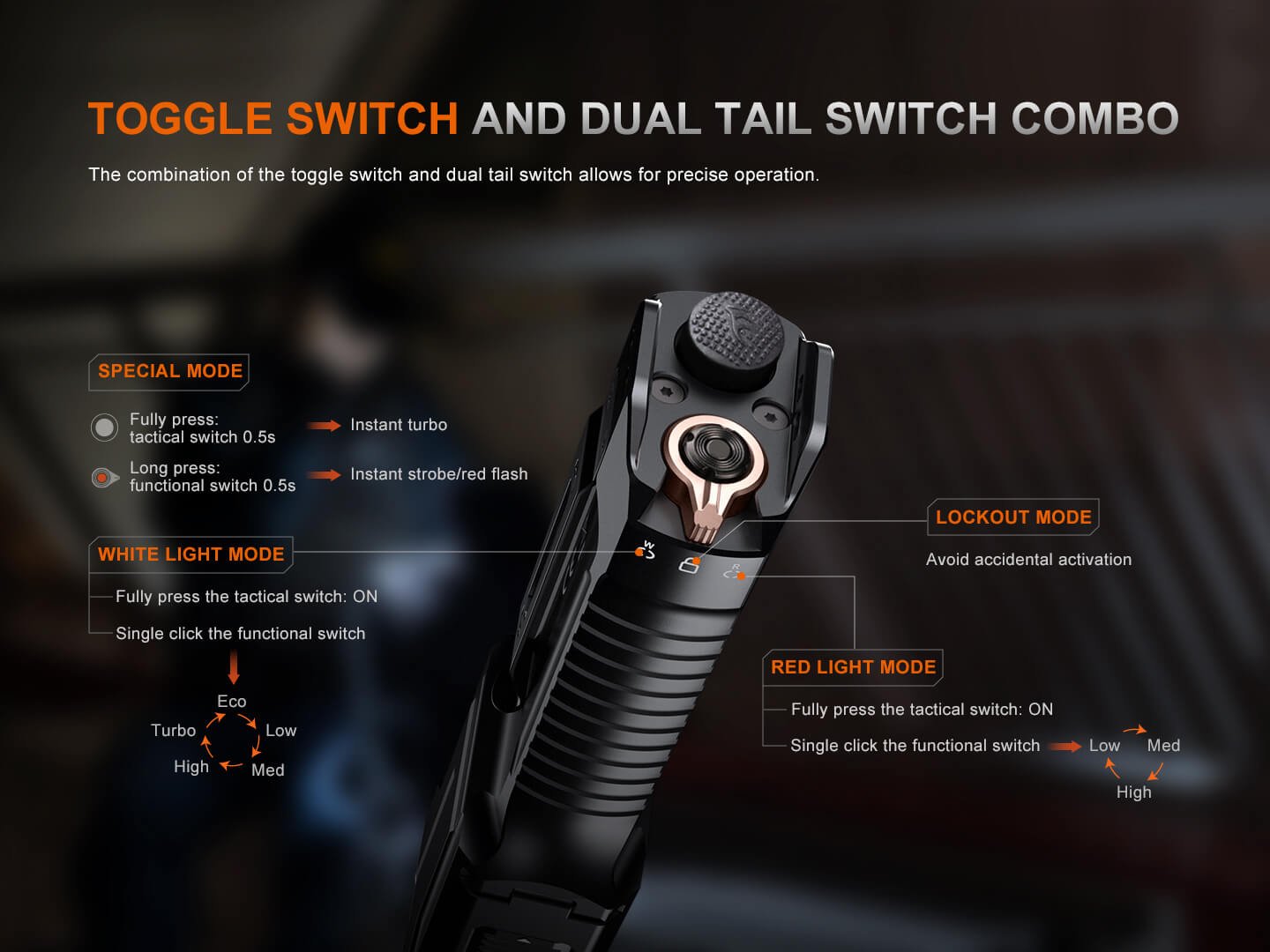 • Toggle switch and dual tail switches provide fast, intuitive control, including instant strobe and instant turbo for rapid response in critical moments.
