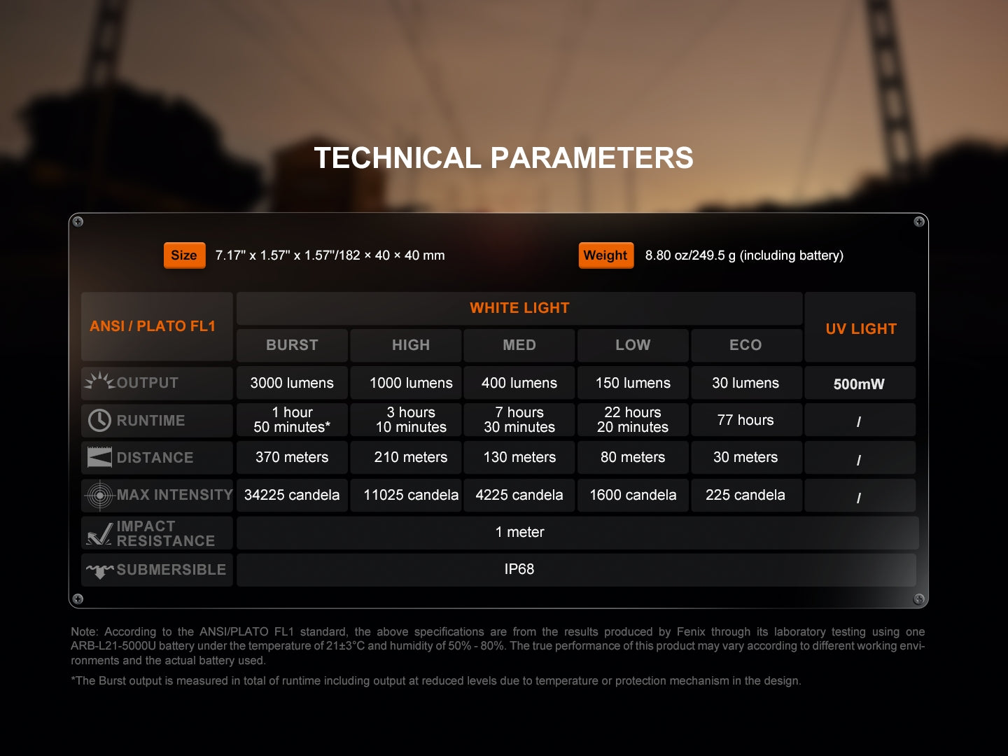 - White light output up to 3000 lumens with a reach beyond 1200 feet for long-range clarity.