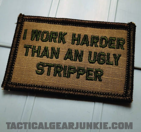 As Seen on Socials - I Work Harder Than An Ugly Stripper - 2x3 Patch - Coyote w/Olive Drab