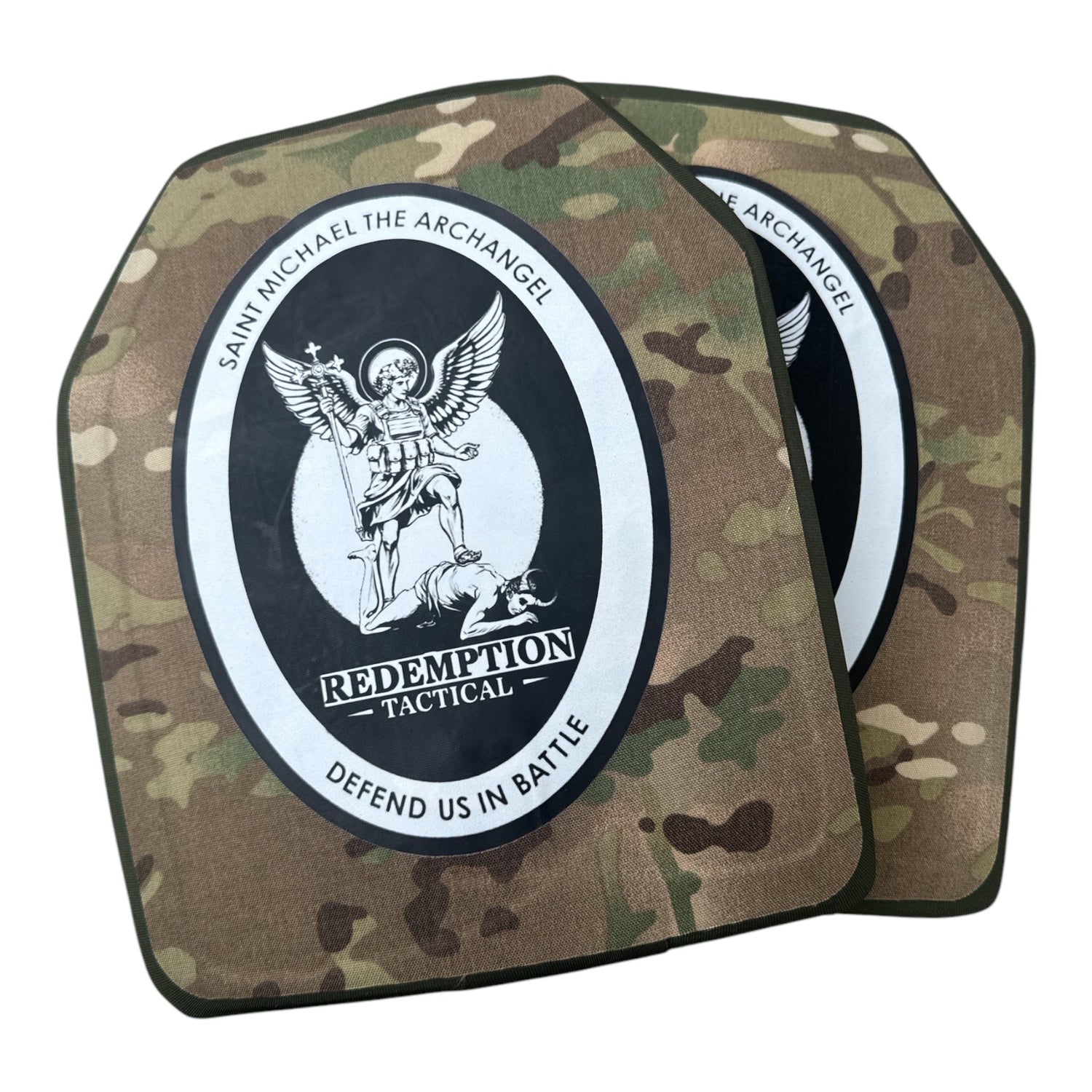 St. Michael Archangel Level IV Ceramic PE Plates — Pair (10x12) Curved, Shooter's Cut