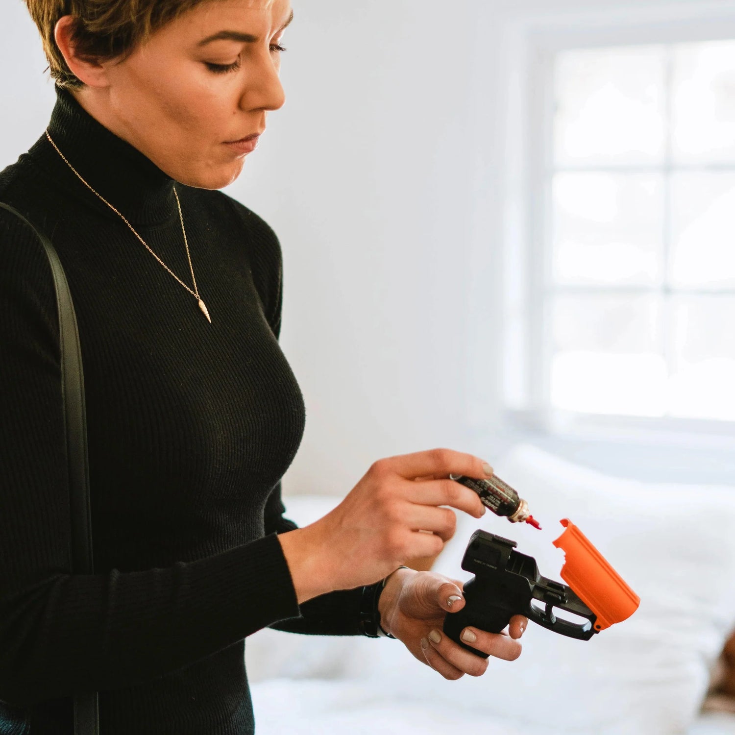 - Police-grade pepper gel — the same formulation trusted by law enforcement for reliable stopping power.